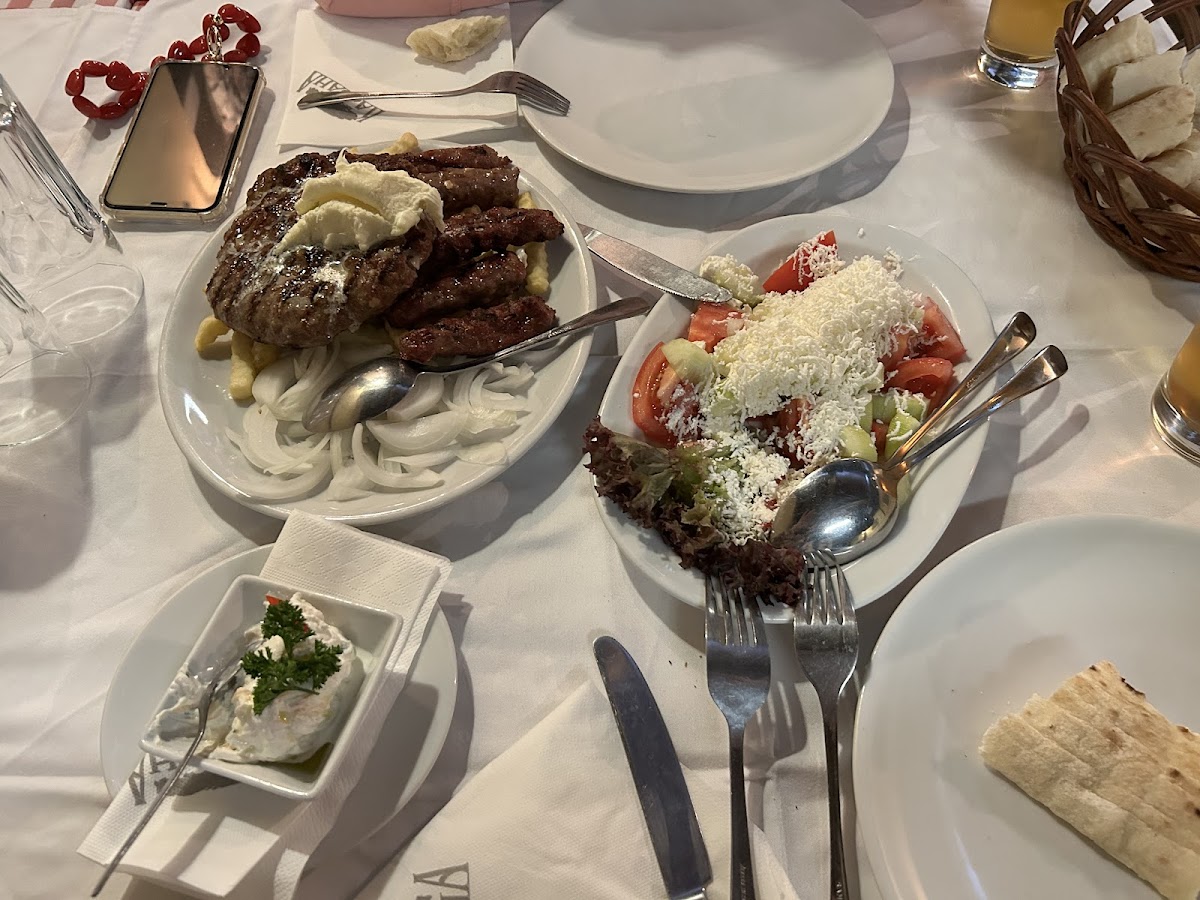We ate cevapcici and a meat that I don’t remember the name exactly. Prices are reasonable, meals were delicious, atmosphere was great. Waitresses are so polite and helpful, explained everything to us. Highly recommend this place. Portions were too big for us to complete our meal so if we go there for the next time. We’ll ask for 1 main and 1 side.